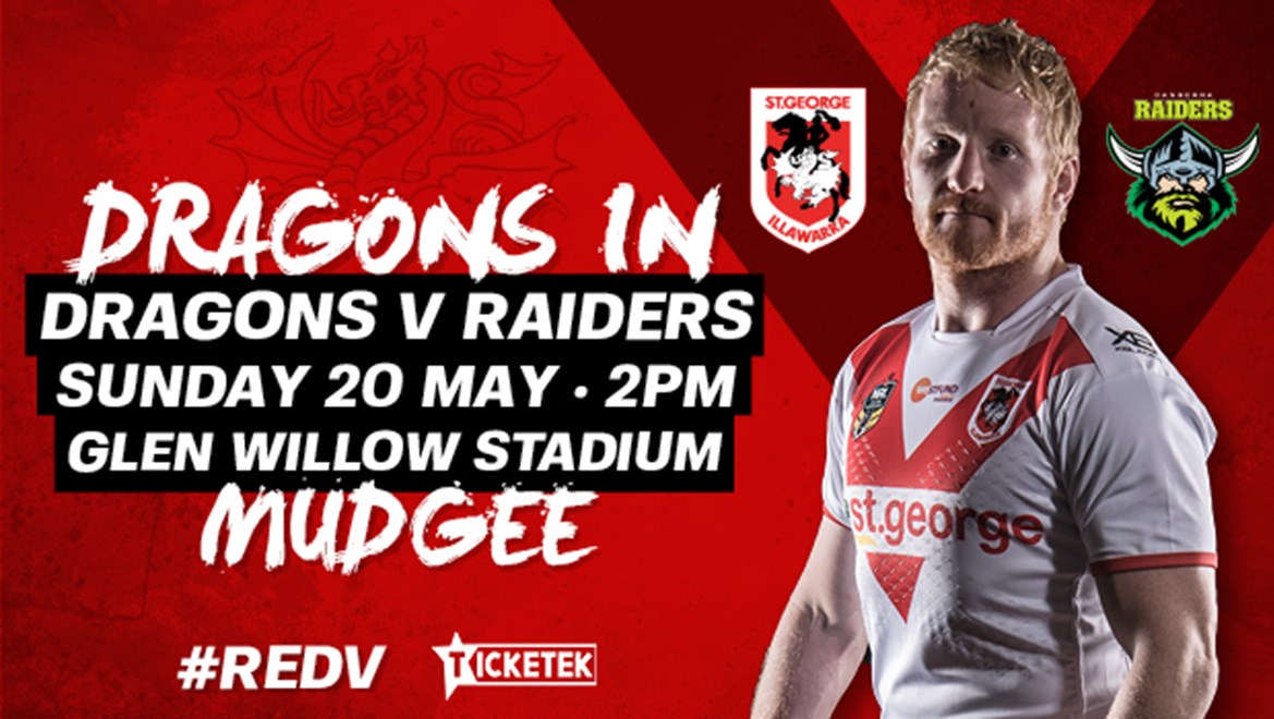 The St George Illawarra Dragons will take their Round 11 clash against the Canberra Raiders to Mudgee's Glen Willow Stadium on Sunday, May 20.