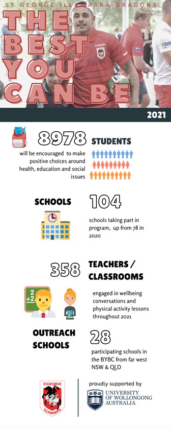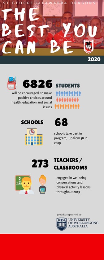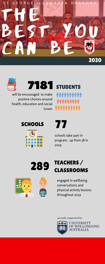 The St George Illawarra Dragons' 'Best You Can Be' program is proudly supported by the University of Wollongong and donors to the Dragons Foundation.