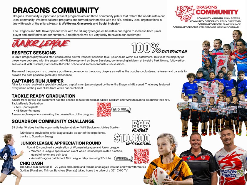 Dragons Community will again utilise three pillars of focus that reflect the needs of the community to deliver their programs in 2026.