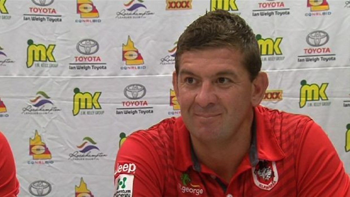 St George Illawarra Dragons Assistant Coach Jason Demetriou discusses the 44-4 point win over the Central Queensland Capras in their trial fixture at Browne Park, Rockhampton on Saturday.