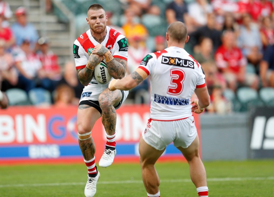 Dragons: 1. Josh Dugan, 2. Nene Macdonald, 3. Euan Aitken, 4. Tim Lafai, 5. Jason Nightingale, 6. Gareth Widdop (c), 7. Josh McCrone, 8. Russell Packer, 9. Cameron McInnes, 10. Paul Vaughan, 11. Tyson Frizell, 12. Joel Thompson, 13. Jack de Belin. Interchange: 14. Tariq Sims, 15. Leeson Ah Mau, 16. Jacob Host, 17. Kurt Mann, 18. Jai Field, 19. Taane Milne, 20. Luciano Leilua, 21. Hame Sele.