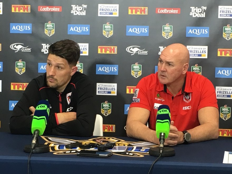 St George Illawarra coach Paul McGregor and skipper Gareth Widdop discuss the Dragons' 20-10 loss to the Gold Coast Titans at Cbus Super Stadium, Robina on Friday night.