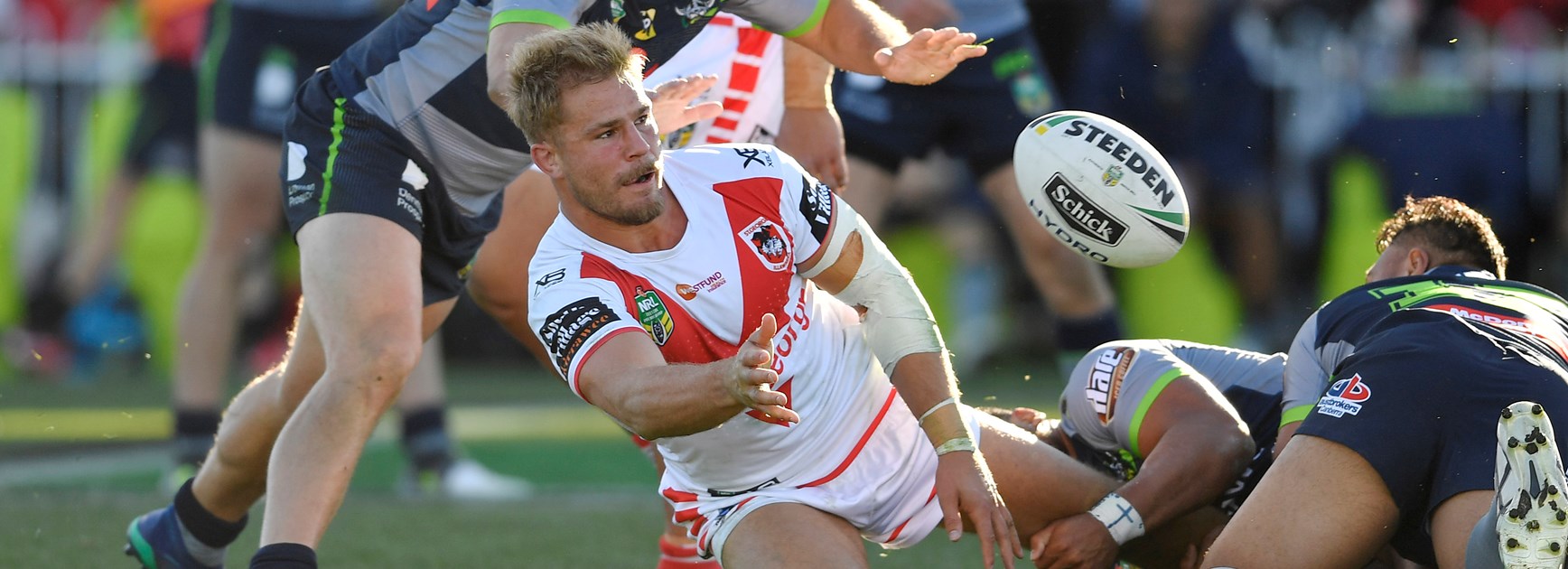 But with De Belin on the verge of a long-awaited Origin chance and his team desperate for a hit-back after the Souths loss, a pain-killing needle was all he needed to inspire his Dragons to a 25-18 win in which he scored a try and produced three offloads, 148 running metres and 38 tackles in a power-packed 56 minutes.