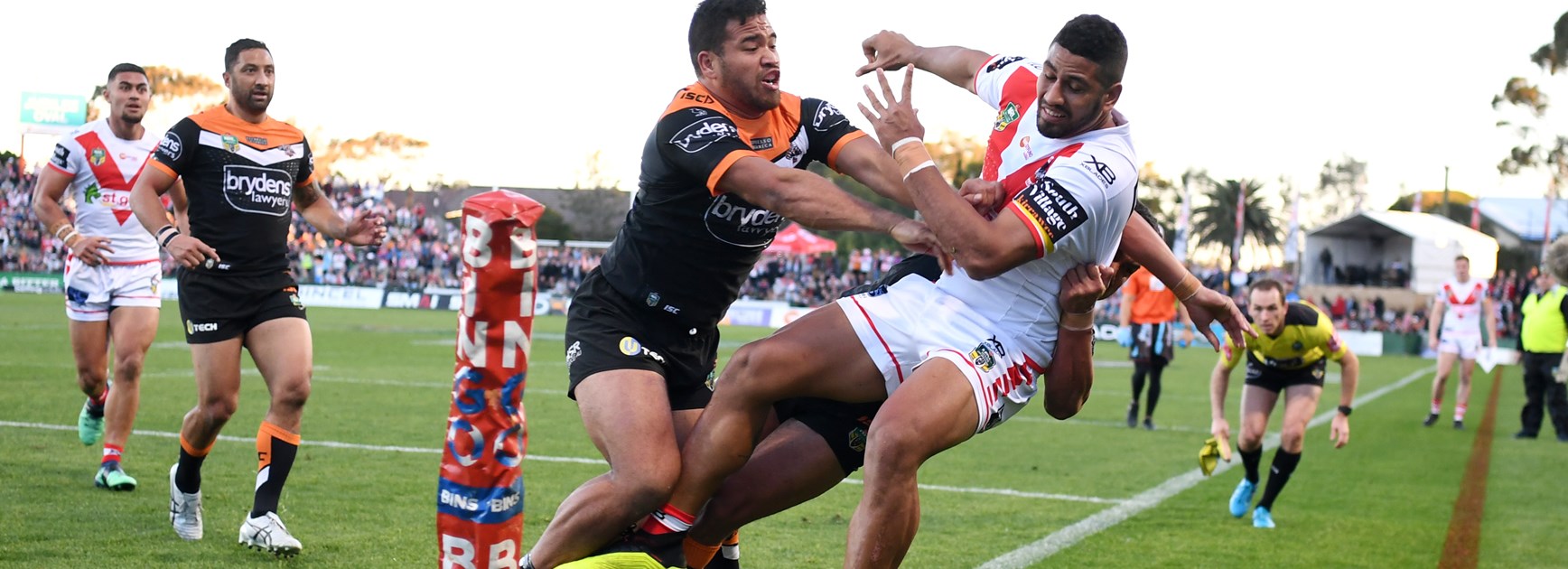 St George Illawarra winger Nene Macdonald suffered a foot sprain midway through the first half of the Dragons' loss to the Wests Tigers on Sunday afternoon.