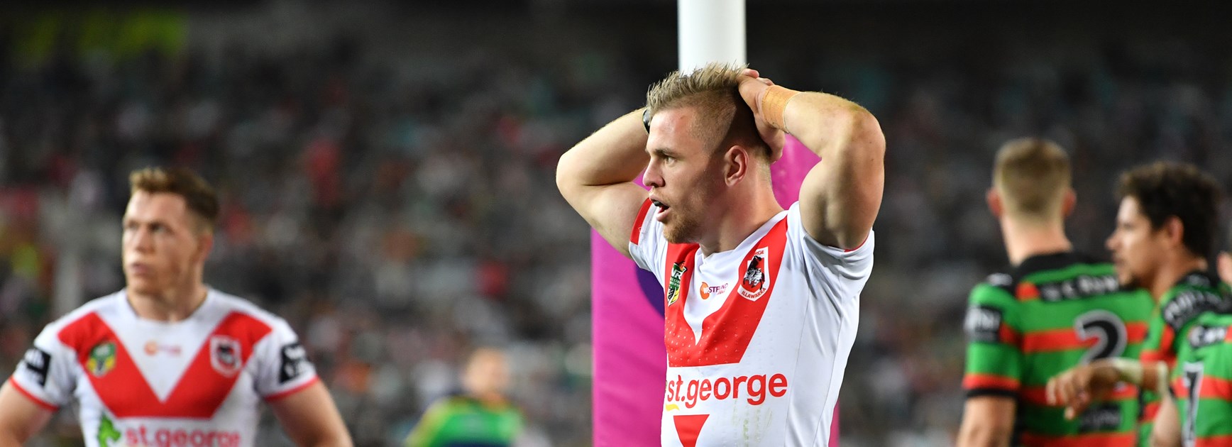 While all that was swirling around Souths, the Dragons had their own problems having lost their skipper and goal-kicker Gareth Widdop, to add to the absence of Paul Vaughan (foot) and Euan Aitken (hamstring), before then losing another NSW Origin forward in Tariq Sims for most of the second half.