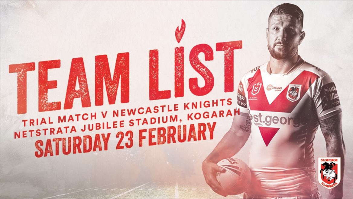 St George Illawarra coach Paul McGregor has finalised the Dragons' team for the trial against the Newcastle Knights at WIN Stadium, Wollongong.