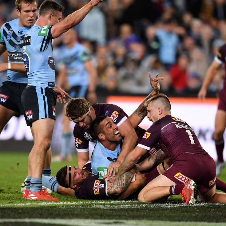 Maroons five-eighth and captain Ali Brigginshaw forced a repeat set with a perfectly weighted grubber into the NSW in-goal and a ruck penalty against prop Simaima Taufa piled more pressure on the Blues.