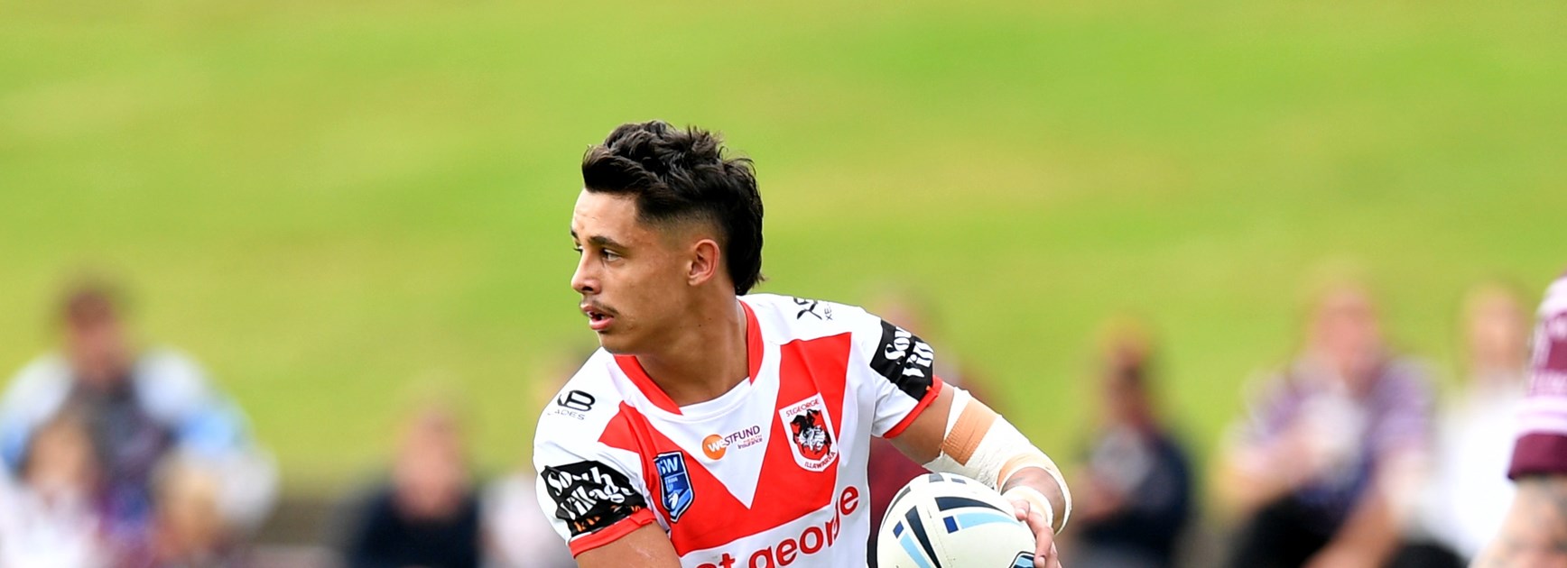 With only nine minutes remaining, Dragons halfback Grant hoped to inspire his team mates with a nice short ball to put fullback Cody Ramsey through a gap to score.