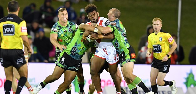 Leading 16-0 at half-time, Canberra piled on two quick tries after the interval through winger Bailey Simonsson and fullback Charnze Nicoll-Klokstad but the Dragons got their way back into the contest when Korbin Sims crashed over in the 50th minute.