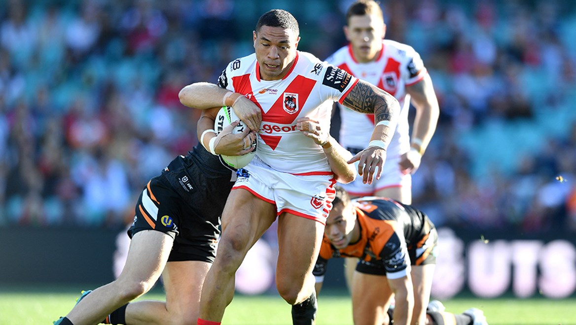 Earlier the Tigers struck in just the fourth minute with Momirovski's first try but then the Dragons surge came. A near-try to winger Jonus Pearson led to the real thing for Euan Aitken in the 17th minute. Robert Jennings fluffed trying to ground a Gareth Widdop kick allowing Aitken to pounce.