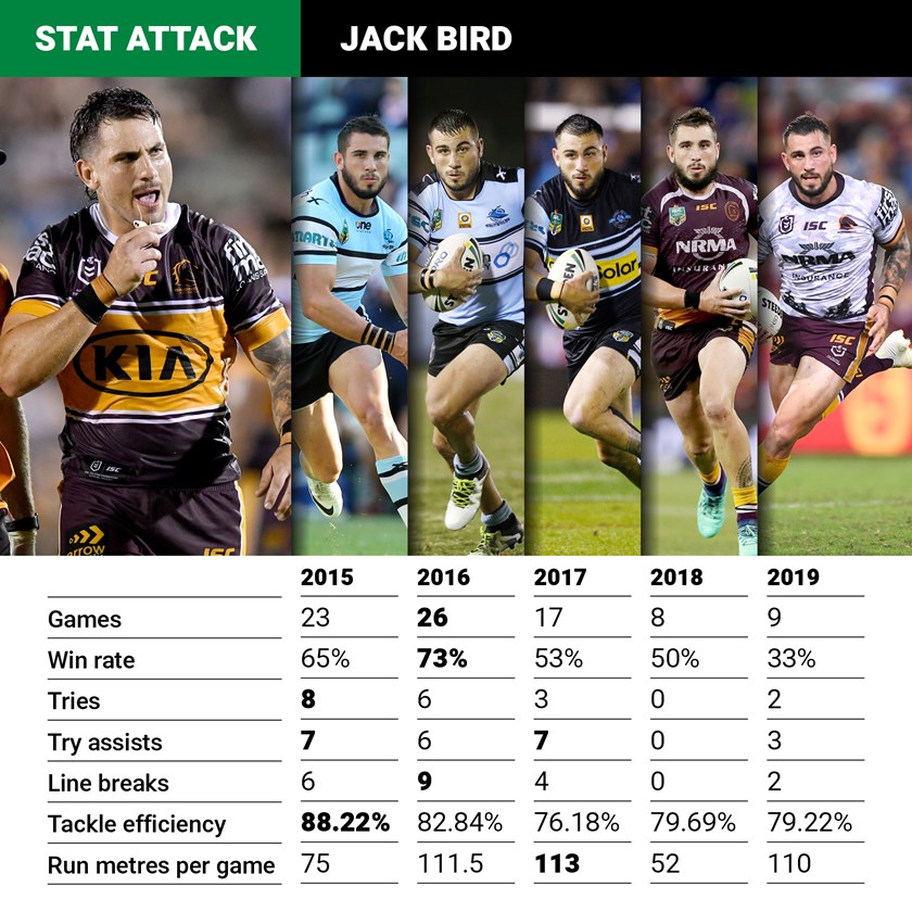 Bird began 2019 in fine touch at centre, with talk of an Origin recall gaining volume as his numbers trended upwards. However, an ACL injury put him back on the sidelines after nine rounds.
