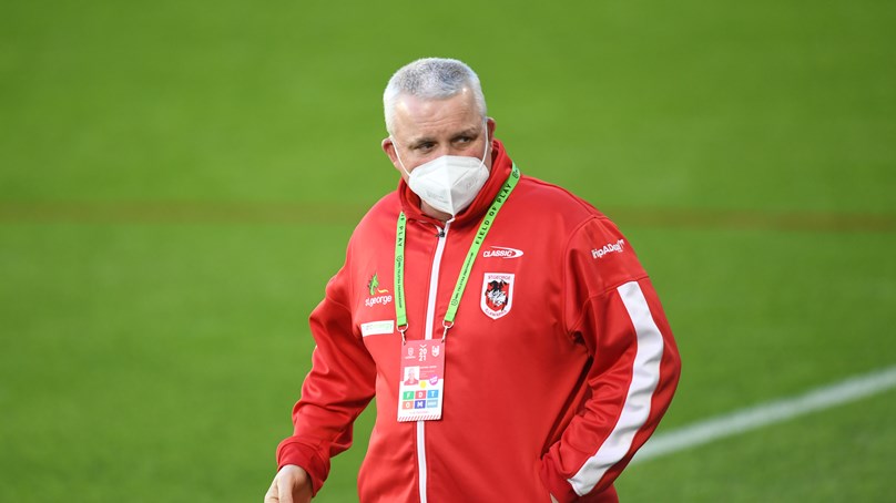 Anthony Giffin chats to the media after his team's Round 21 game against the Raiders