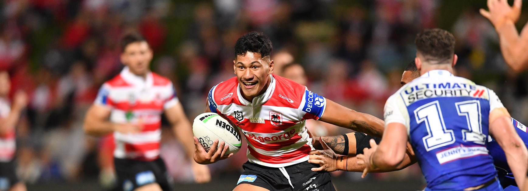 Talatau Amone grew up partnering Jayden Sullivan in the halves but the Dragons prodigies are prepared to jostle for a starting berth alongside captain Ben Hunt in 2022.