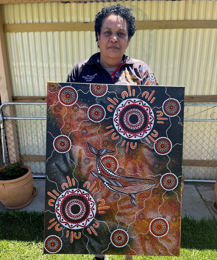 During her time working for Youth Justice, she developed a love for painting at which time she was encouraged by Aunty Pat Dacey (Wiradjuri elder) to explore and expand on her artistic abilities.