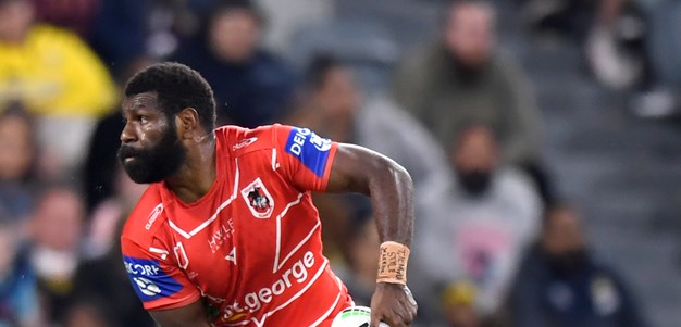 Winger for Dragons is number 5 Mikaele RavalawaWinger for Raiders is number 5 Jordan Rapana