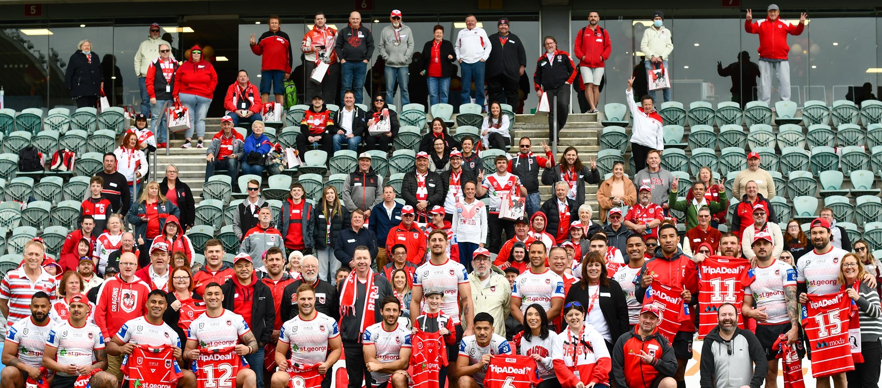 Some of our longest-serving Red V members were rewarded for their outstanding commitment to the Dragons ahead of our Round 23 match against the Titans. After enjoying morning tea while watching the squad through the captain's run, lucky members presented the players with their jerseys before everyone jumped on the field to meet the players.