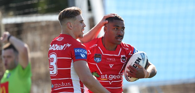 The Dragons capitalised on some penalties through a try to Duke Grant who pounced on a grubber kick to put the ball down, and after a successful conversion the Dragons led 6-0.
