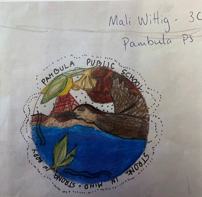 The Whale (Burri Burri) is a totem of the Dharawal people and represents the relationship between students, staff and parents at our school. I also included a red-bellied black snake (Bahnaga) because snakes are another totem of the Dharawal people and the Lyrebird (Wiridjirbin Nura) and Cockatoo (Garraway-Kirrawee) which can both be found on our land.