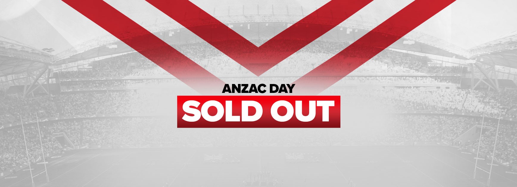 The Dragons’ annual Anzac Day clash against the Roosters at Allianz Stadium has officially been sold out.