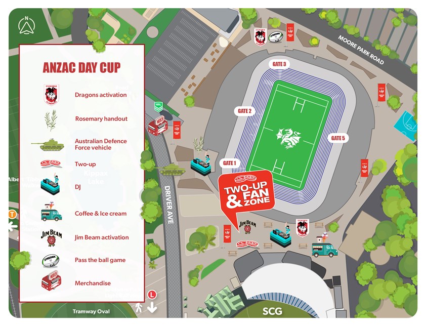 Out the front of Gate 3 will be the Dragons Fan Zone, with activities such as pass the ball, vertical jump, and height comparison with NRL and NRLW stars.