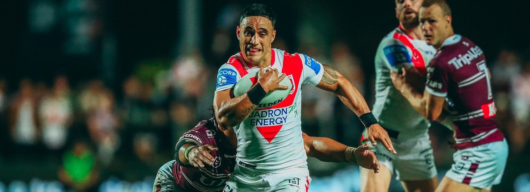 A Tyrell Sloan double helped lead the Dragons to a 20-18 win over the Sea Eagles at 4 Pines Park on Thursday night.