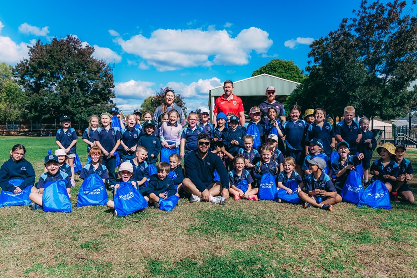 The crew spoke to students about resilience and the importance of developing healthy habits before running through drills and games designed to improve rugby league skills.
