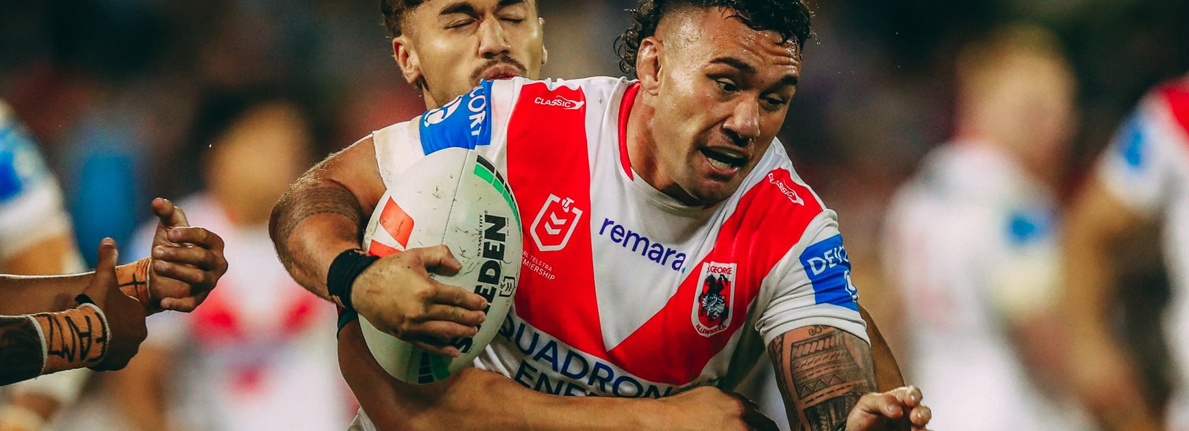 Prop for Broncos is number 8 Patrick CarriganProp for Dragons is number 10 David Klemmer