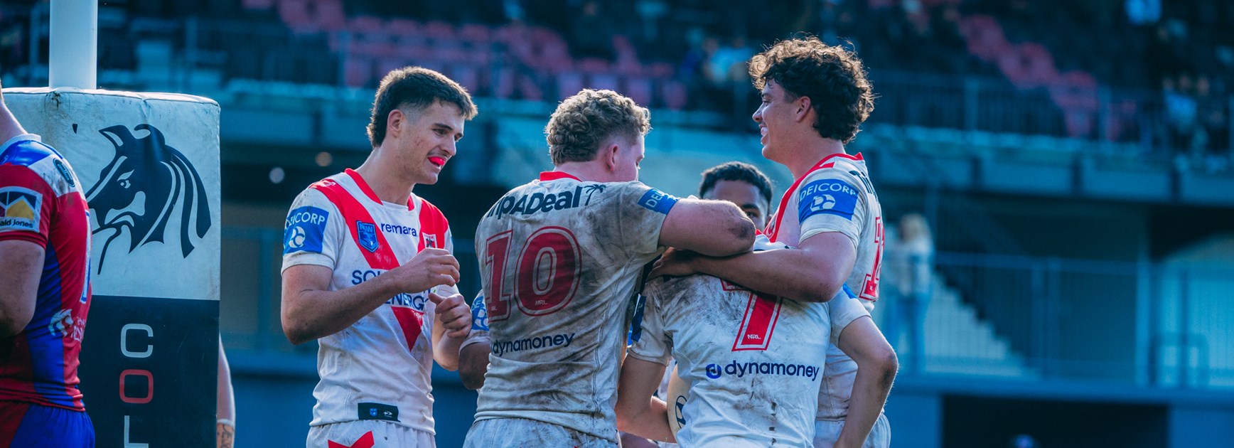 A second half surge helped the Dragons to a 36-26 win over the Knights in their Jersey Flegg showdown at Collegians.