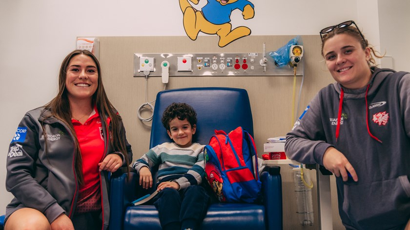 Lyhkan King-Togia, Michael Molo, Keele Browne and Hannah Southwell were on hand alongside the Dragons Community Team and stopped by the Children's Ward and the Wollongong Cancer Care Centre.