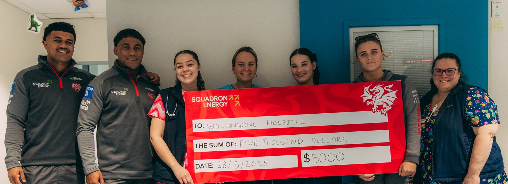 The Dragons last week dropped in to Wollongong Hospital to pay a visit to patients and present a $5,000 cheque.